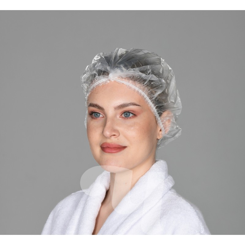 Универсальные шапочки для душа изготавливаются из полиэтилена (15 мкм).