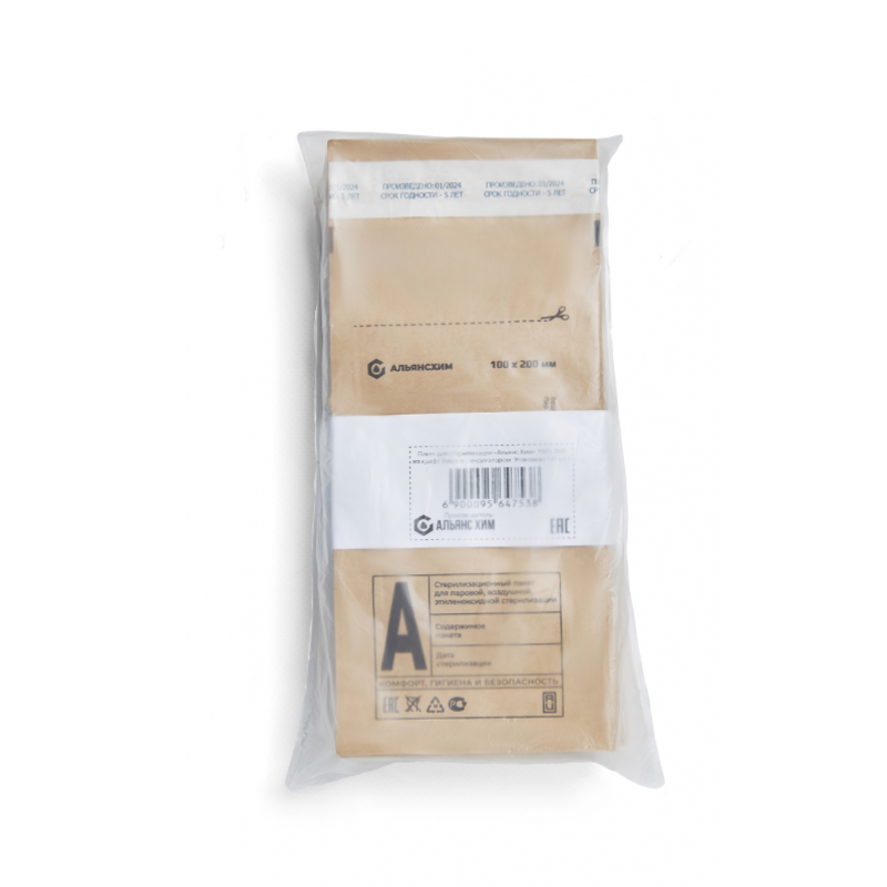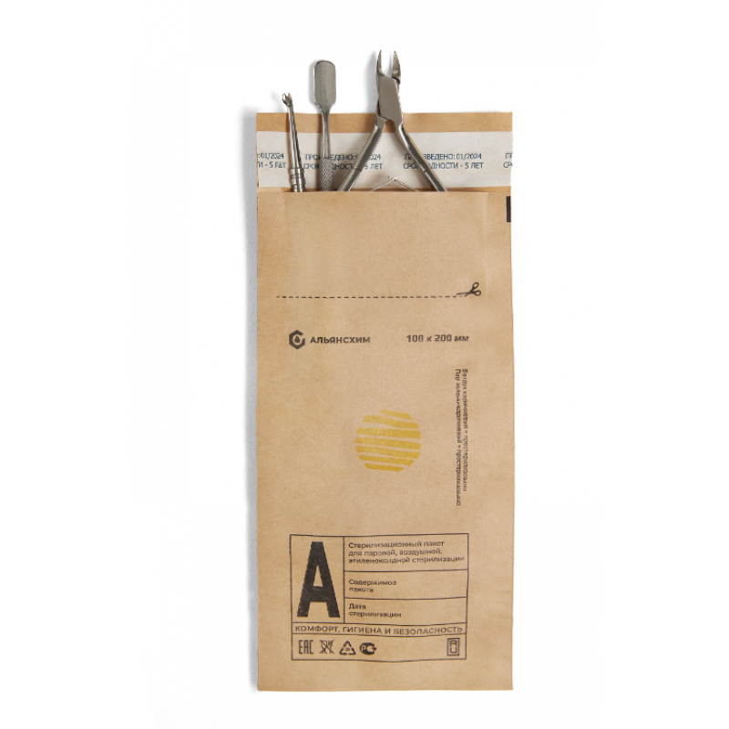 Крафт пакеты для стерилизации коричневые "Альянс Хим" 100х200 мм (100 шт)