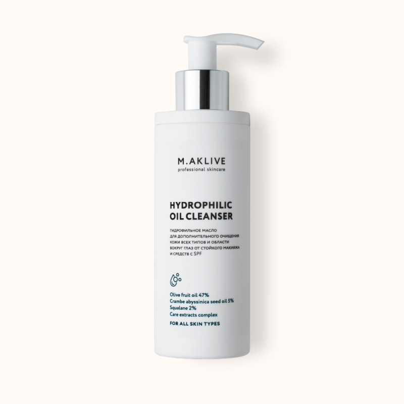 Гидрофильное масло M.AKLIVE на основе натуральных некомедоногенных масел оливы (INCI: olea europaea (olive) fruit oil, Испания) и крамбе (INCI: crambe abyssinica oil, Швейцария), в комплексе с увлажняющим блендом натуральных экстрактов (INCI: melia azadirachta flower extract, melia azadirachta seed extract, coccinia indica fruit extract, Сингапур) и скваланом (INCI: squalane, Испания), мягко и тщательно очищают кожу лица любого типа, благодаря принципу действия "подобное растворяется в подобном". Взаимодействуя с водой, продукт, благодаря современным гидрофильным ПАВ (INCI: pentaerythrityl tetraisostearate, Франция; sorbeth-30 tetraoleath, Япония), легко смывается с кожи без ощущения масляного финиша. Жирные кислоты, минералы и витамины в составе растительных компонентов продукта дополнительно успокаивают и ухаживают за кожей, сохраняя ее гладкость и эластичность.