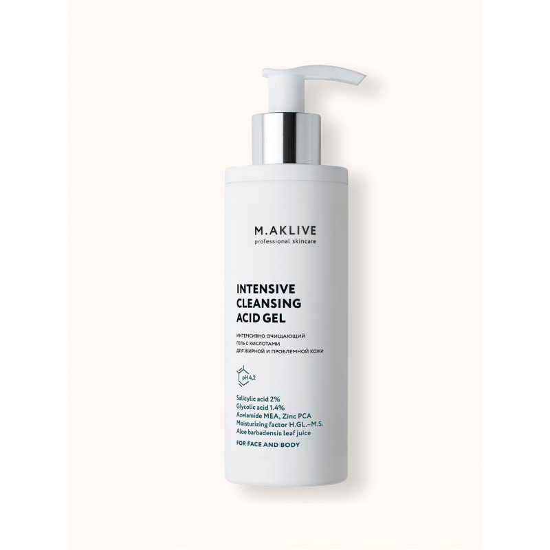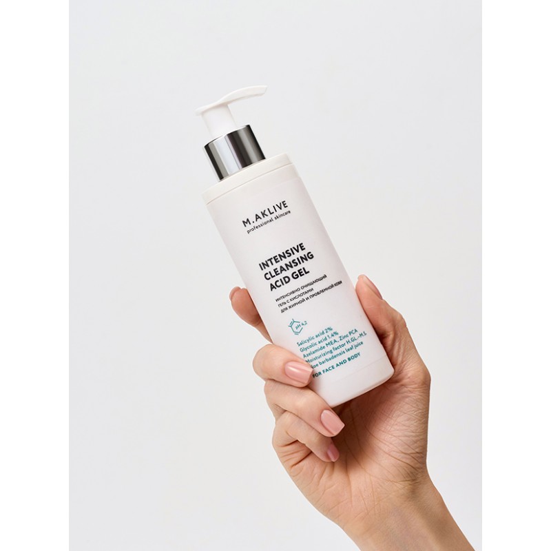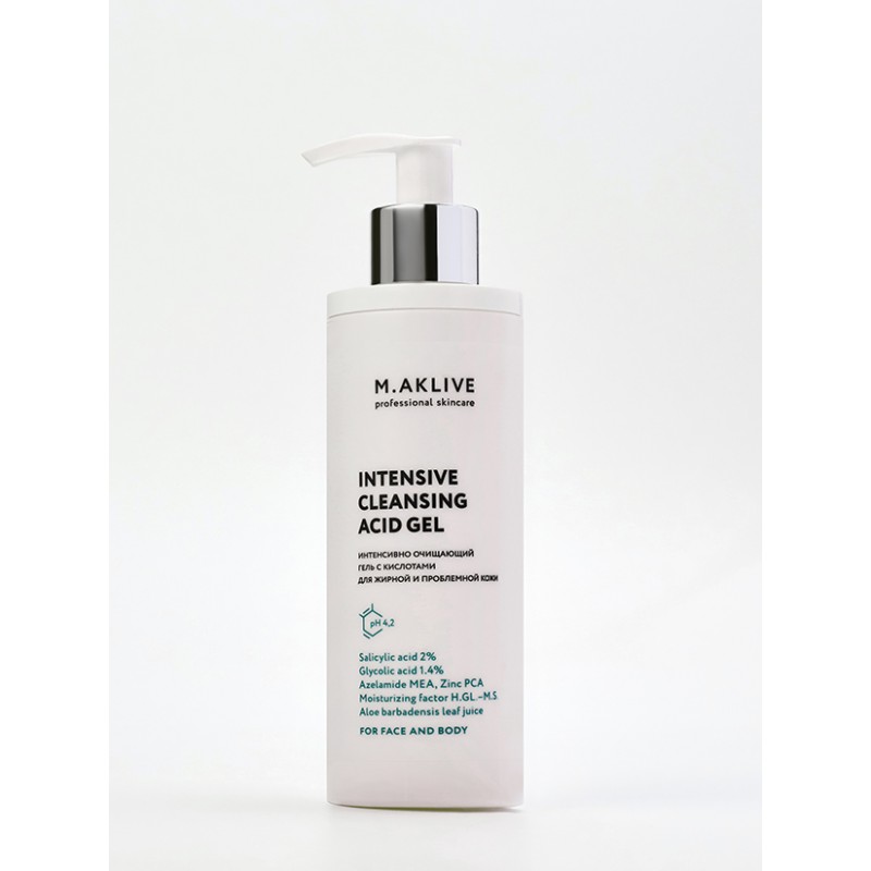 Интенсивно очищающий гель с кислотами(для жирной и проблемной кожи) Maklive 200 мл.
