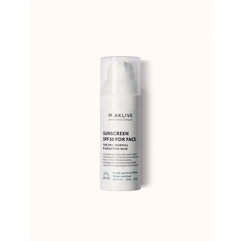 Солнцезащитный крем SPF50 для сухой, нормальной и чувствительной кожи Maklive 50мл.
