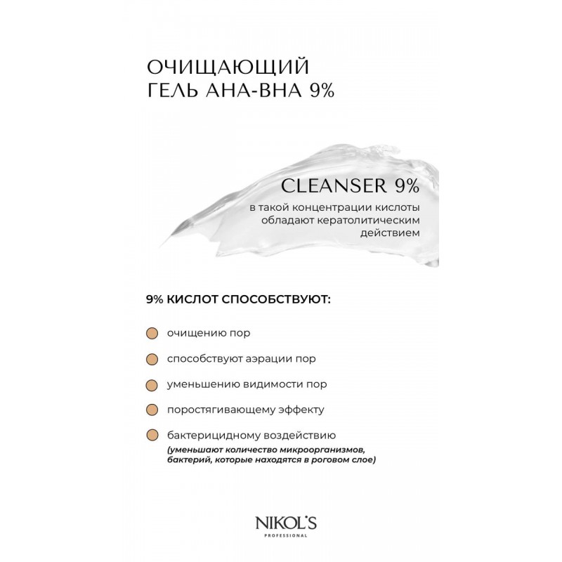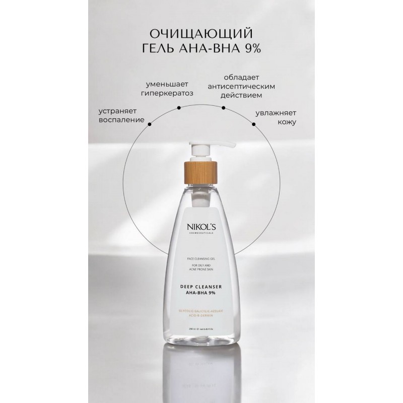 Очищающий гель для лица AHA-BHA 9% для жирной и комбинированной кожи 250мл
